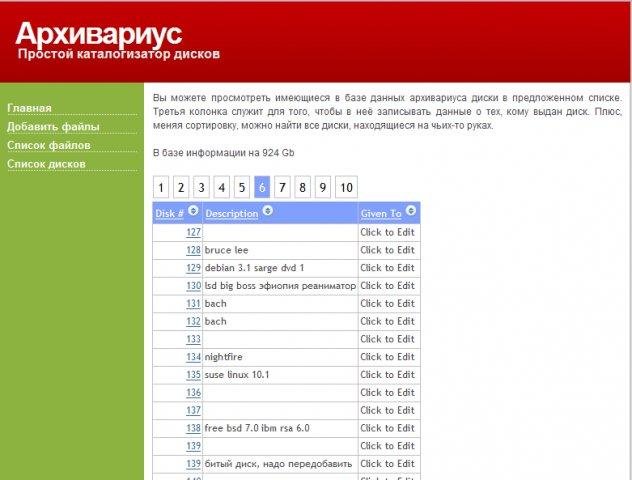 Personal burned CD/DVD manager with linear numeration and search facilities available from web interface.