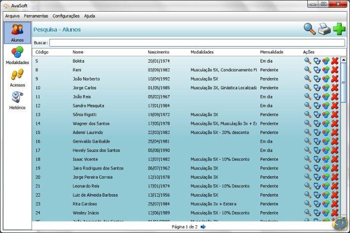 AvaSoft é um sistema de automação para gerenciamento de matrículas e avaliações corporais. Ideal para academias, escolas e profissionais da área de nutrição e saúde. O programa possui cadastro de alunos, modalidade, matrícula de modalidades e avaliações corporais. É possível gerar relatórios de todos os cadastros existentes no programa.