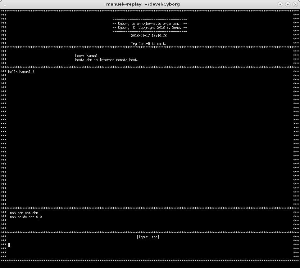 Cyborg is an cybernetic organism project written with Ada programming language and using PragmARC library ; Developped on GNU/Linux system with 160x64 characters terminal.