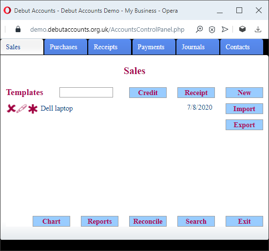 Debut (Double Entry Bookkeeping Utility) is a cloud-based accounting package, that enables businesses to keep track of their sales, purchases, receipts & payments. The accounting information is stored centrally on a server, and accessed by multiple users using a browser interface. It features strong encryption and an intuitive multi-window interface There is a full range of reports and extensive search options. It’s possible to import and export transactions, contacts and chart of accounts from/to other accounting packages. Complete sets of accounts can be archived and then restored. Documents can be attached to transactions, either from file or directly from a TWAIN scanner. Transactions can be flagged for action by other users.