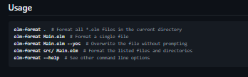 elm-format formats Elm source code according to a standard set of rules based on the official Elm Style Guide. It makes code easier to write, because you never have to worry about minor formatting concerns while powering out new code. It makes code easier to read, because there are no longer distracting minor stylistic differences between different code bases. As such, your brain can map more efficiently from source to mental model. It makes code easier to maintain because you can no longer have diffs related only to formatting; every diff necessarily involves a material change. It saves your team time debating how to format things because there is a standard tool that formats everything the same way. It saves you time because you don't have to nitpick over formatting details of your code.