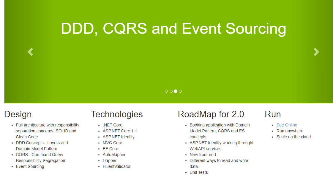 The Equinox Project is a open-source project written in .NET Core. The goal of this project is implement the most common used technologies and share with the technical community the best way to develop great applications with .NET. You will need the latest Visual Studio 2019 and the latest .NET Core SDK. Please check if you have installed the same runtime version (SDK) described in global.json. Also you can run the Equinox Project in Visual Studio Code (Windows, Linux or MacOS). Full architecture with responsibility separation concerns, solid and clean code. Booking application with domain model pattern, CQRS and ES concepts. Maybe you don't need a lot of implementations that is included, try avoid the over-engineering.