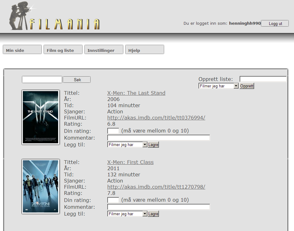FilMania is website that I've created using IMDBPHP (http://projects.izzysoft.de/trac/imdbphp). On this webside, users can make their own lists with movies. The user makes own lists which can me named. When a movie is put in a list, all information is provided from IMDb.com by IMDBPHP, and the user can also make their own comment and rating.
