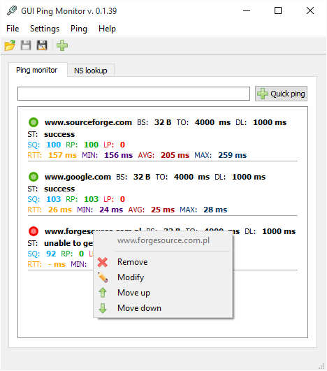 Currently GUI Ping Monitor provides: