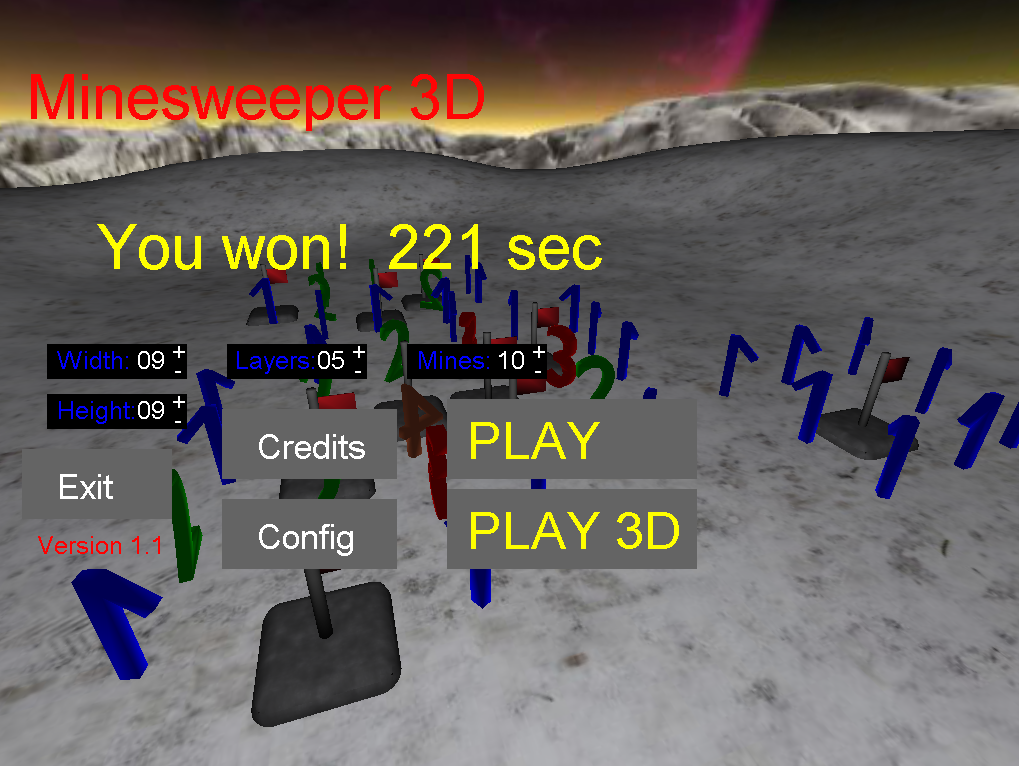 In Minesweeper 3D you have on one hand the original gameplay, but from a three-dimensional view. On the other hand the game allows you to play a bigger field, with even more layers, in the third dimension.