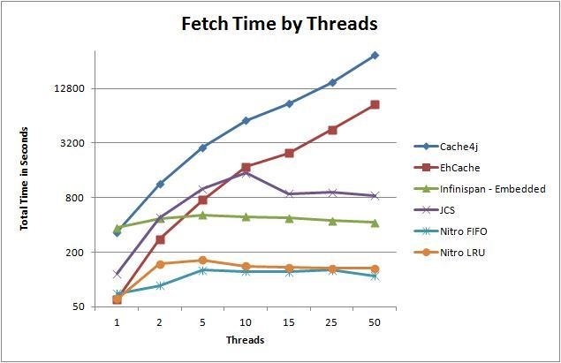 One of the fastest, 100% Pure Java In-memory cache. Its aimed at providing very fast, light, highly scalable cache with high concurrency. The fetch operation from cache are always in constant time, O(c), irrespective of the number of threads accessing the cache or cache size.