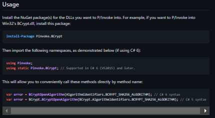- You may also copy and paste the P/Invoke signatures you need directly into your projects if desired