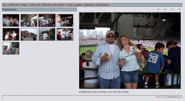 pix is a online picture gallery system written in python. it has minimal features but also minimal complexity and external dependencies. it uses your directories to organize pictures, creates and caches thumbnails and web friendly image sizes as well.