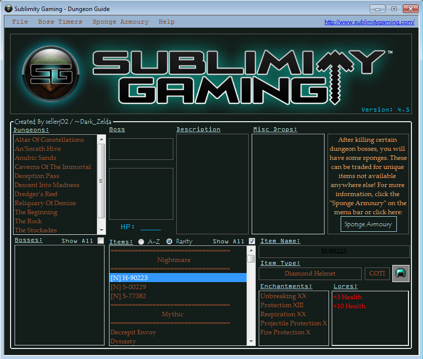 A simple program i made to sum up all of the dungeons and loot available on the Sublimity Gaming server.
