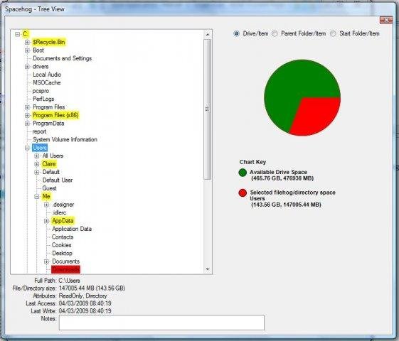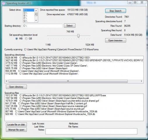Small portable Windows utility to quickly locate large files/directories tying up disk space. Highly configurable but intuitive with a guided tree-view to quickly show potential problem areas in your filesystem.