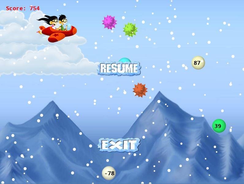 Press Arrow keys or A,S,D,W key to control the copter.Avoid the spikes & shoot them by pressing space. If the copter touches the positive balls then score will increase & score will decrease for the