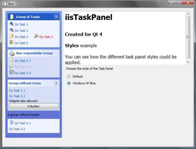iisTaskPanel is Qt widget like to Windows XP panel for common tasks of a folder,