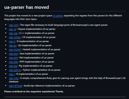 ua-parser is a multi-language library for parsing User-Agent strings into structured data, such as browser, OS, and device information. Originally created for web analytics and user tracking, it supports a wide range of platforms and is available in JavaScript, Python, Java, and other languages. ua-parser is often used in server logs, analytics dashboards, and A/B testing systems to segment traffic.