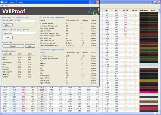 Comparison and validation tool for proofing processes in the graphic arts industry