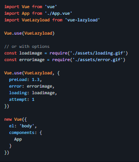 Vue module for lazyloading images in your applications. Some of goals of this project worth noting include being lightweight, powerful and easy to use, work on any image type, add loading class while image is loading. It supports both of Vue 1.0 and Vue 2.0. You can configure which events you want vue-lazyload by passing in an array of listener names. This is useful if you are having trouble with this plugin resetting itself to loading when you have certain animations and transitions taking place. use Intersection Observer to to improve performance of a large number of nodes. If only the event is provided, remove all listeners for that event. Manually trigger lazy loading position calculation.