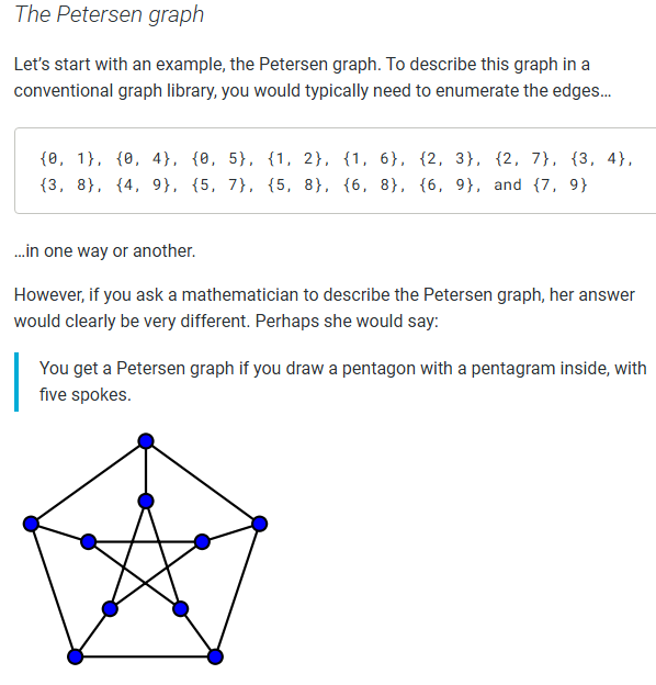 - It’s also possible to define a new graph by writing a function that describes the edge set of the graph