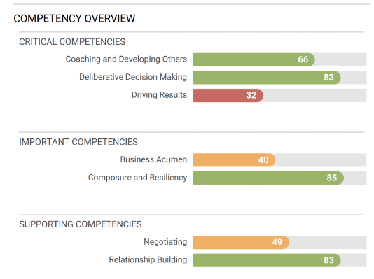 The Caliper Essentials for Selection report compares the candidate’s results to a validated job model to inform the hiring manager about overall role fit. The report is designed to support varying roles within the employee selection process from HR professionals and recruiters, to hiring managers. In addition to understanding a candidate’s fit with a particular job role, the hiring professional is also given potential interview questions to help probe into developmental opportunities for the candidate allowing you to further comprehend the individual’s potential within the role. Detailed summary of how the individual communicates, works with others, solves problems, makes decisions, and organizes and prioritizes time. Provides an overall fit score for 52 validated job models including 11 sales-specific job models. An easy-to-use, role-specific summary of the strengths and areas of development for the candidate.